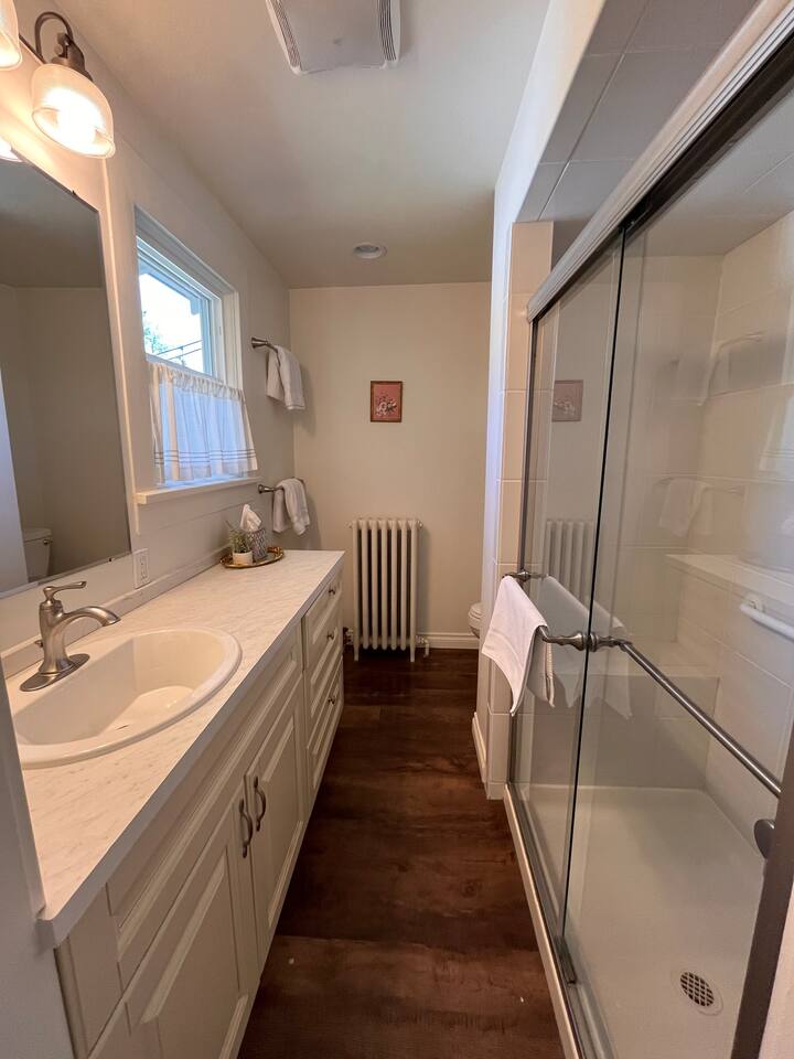 Guests have full dedicated use of the entire home, it’s separate yard, separate driveway and separate parking and over 1.5 acres of park like property.